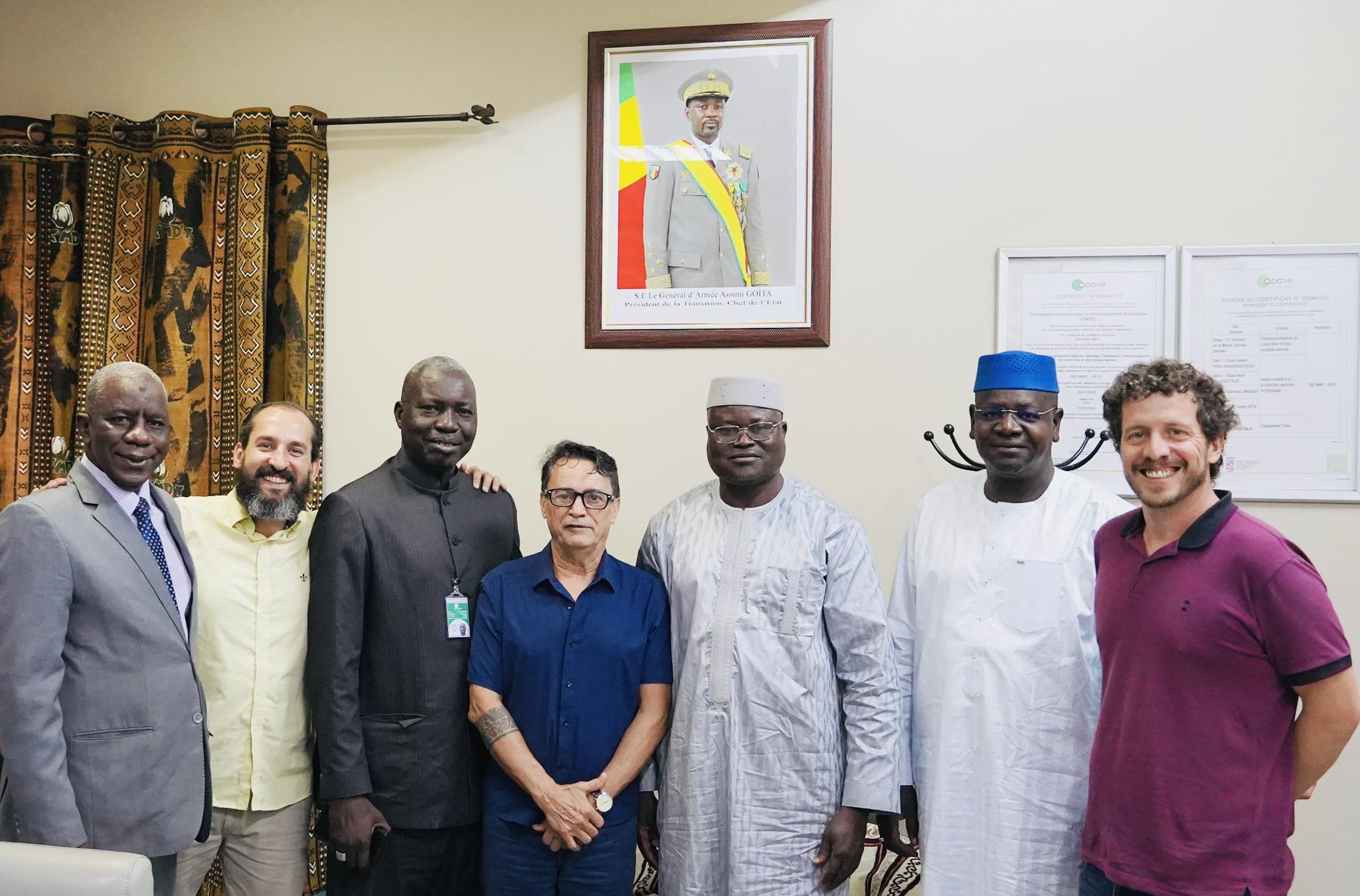 Le vendredi 29 août 2025, la Compagnie Malienne pour le Développement des Textiles (CMDT) a accueilli une délégation de l’Agence Brésilienne de Coopération (ABC) dans la salle de réunion de sa Direction Générale à Bamako, pour une réunion technique consacrée au suivi du projet Cotton-Sol, lancé en 2019.